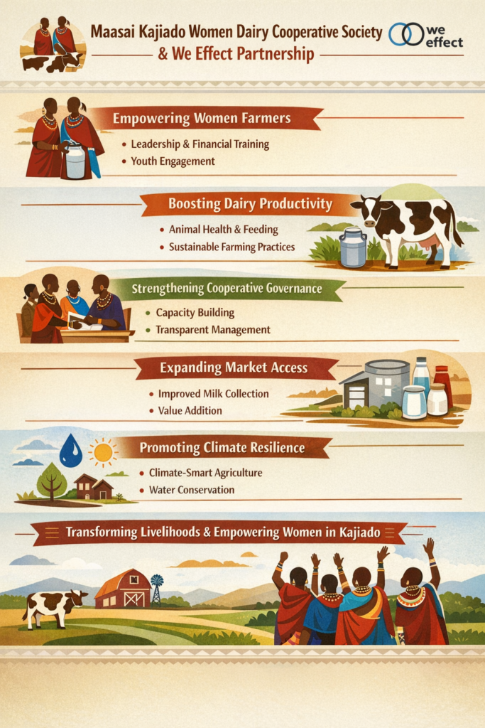 The Maasai Kajiado Women Dairy Cooperative Society continues to transform livelihoods in Kajiado County through a major development initiative implemented in collaboration with We Effect. The partnership reflects a shared commitment to empowering rural women, strengthening cooperative systems, and creating sustainable economic opportunities through dairy farming.